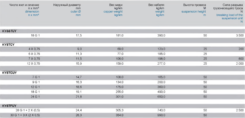 | 3000819 | KYSTFUY-JZ | PVC-LTG.M.ST?TZGEFL.U.TRAGORGAN | 24,4 | 28G1+2X(0,5)C | 305,3 | 740 |