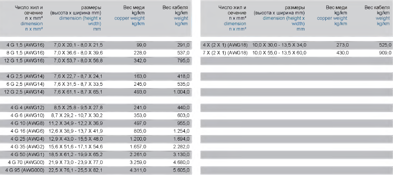 согл. VDE 0293-308 до 5 жил: цветная маркировка, более 6 жил: черные жилы с белой цифровой маркировкой, с желто-зеленой жилой |