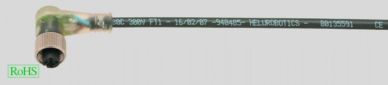 Для 3 светодиодов, цвета: белый, желтый, зеленый – по запросу. ** Кабель датчика ROBOFLEX®-recycle, угловой штекер M12, оконцован с одной стороны, 5-pin. Поставляется по запросу