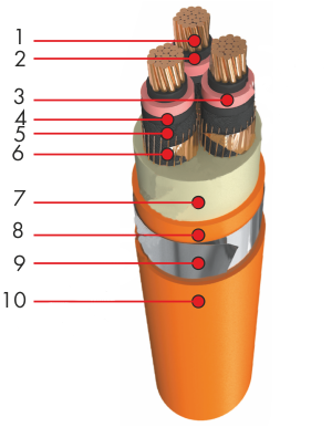 Кабель с изоляцией из этиленпропиленовой резины в броне из стальных плоских оцинкованных лент в оболочке не распространяющей горение. MEDIAstrip® B H