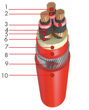 - изоляция из сшитой этиленпропиленовой резины (EPR)
