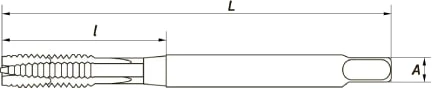 | Артикул | Тип резьбы, мм | Шаг резьбы, мм | Длина метчика, мм (L) | Диаметр хвостовика, мм | Квадрат, мм (А) | Диаметр отверстия |