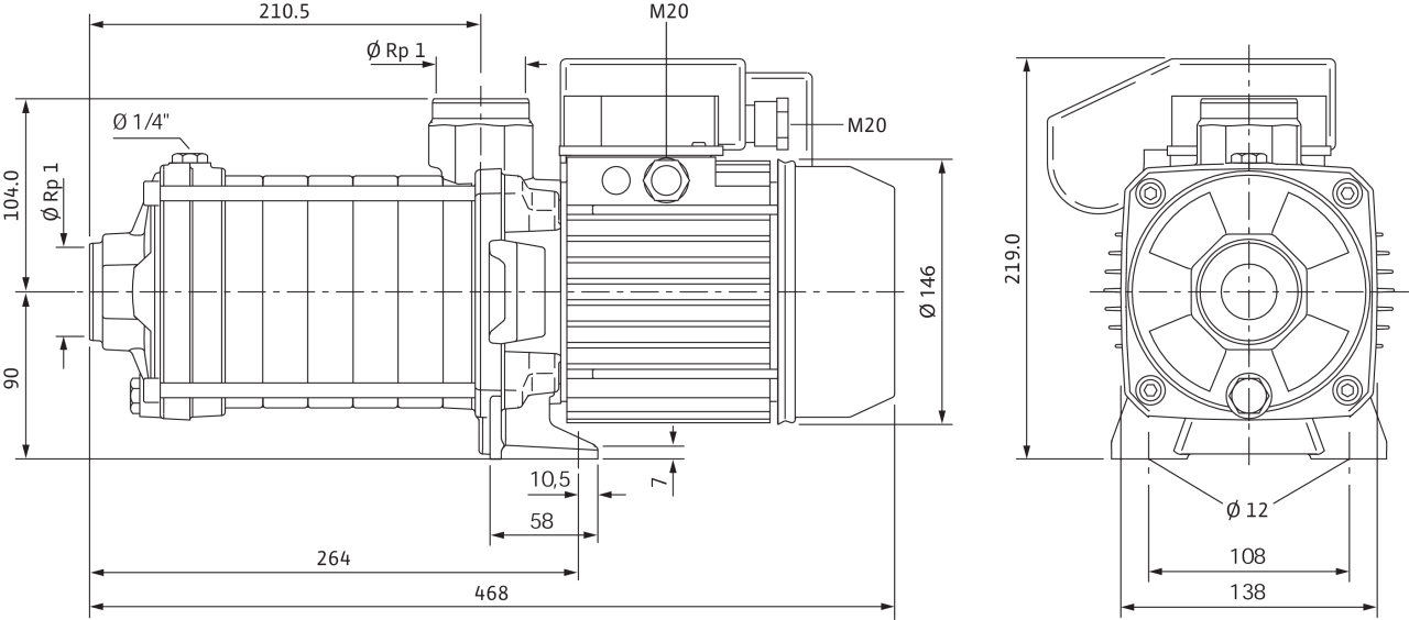 | Номинальный внутренний диаметр патрубков с напорной стороны Rp | 1 |