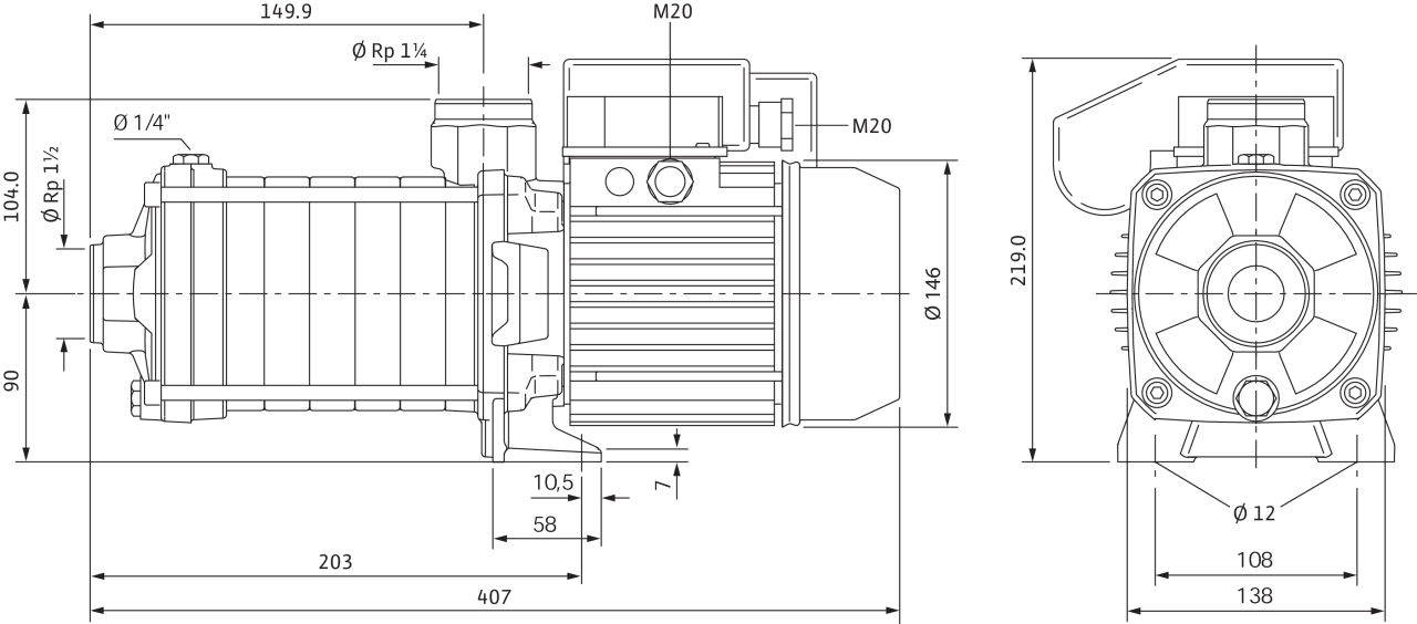 | Номинальный внутренний диаметр патрубков с напорной стороны Rp | 1Вј |