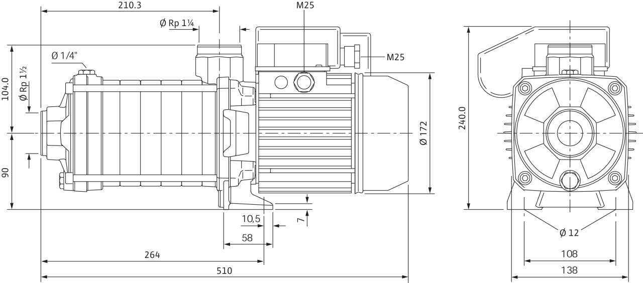 | Номинальный внутренний диаметр патрубков на стороне всасывания Rp | 1ВЅ |