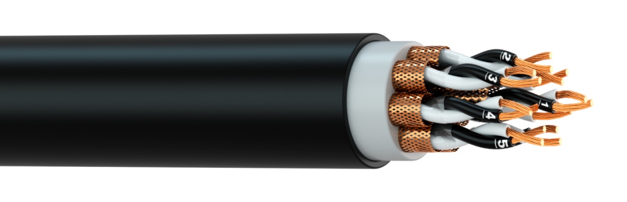 Кабель с десятью триадами токопроводящих жил сечением 2,5 мм2 из медных проволок, с изоляцией из этиленпропиленовой резины, с индивидуальными экранами триад в виде оплетки из медных проволок, с оболочкой из ПВХ композиции пониженной пожарной опасности