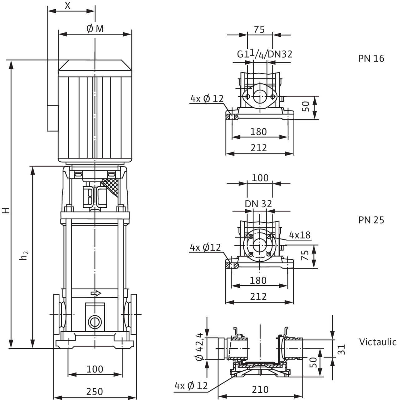 | Номинальный внутренний диаметр фланца (с напорной стороны) | DN 32 |