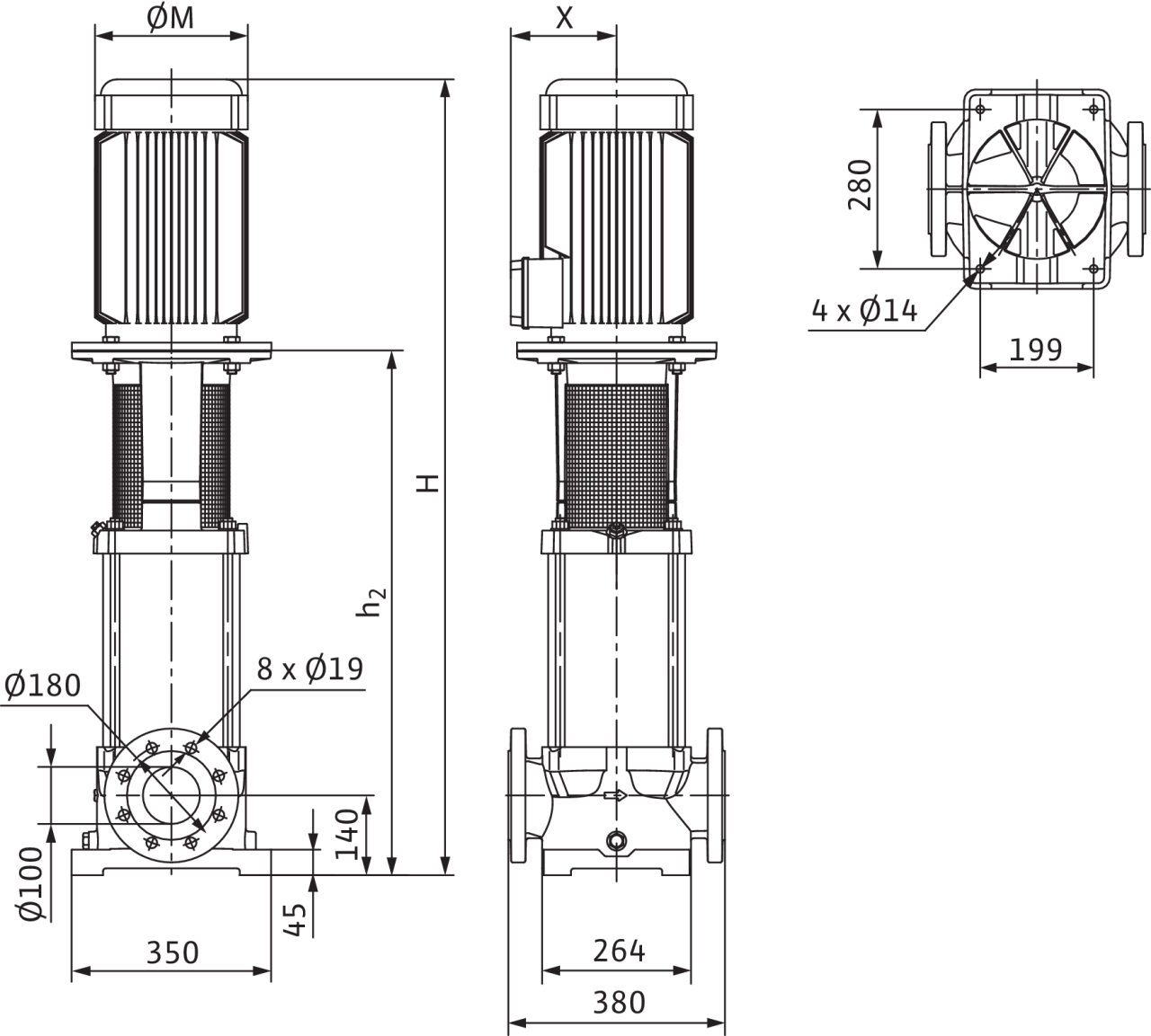 Вал насоса и вал стандартного электродвигателя IEC соединены друг с другом посредством продольно-свертной муфты. Отдельный подшипник качения соединительного элемента гарантирует оптимальное восприятия осевых усилий. Промежуточные подшипники гидравлической части обеспечивают долгий срок службы.