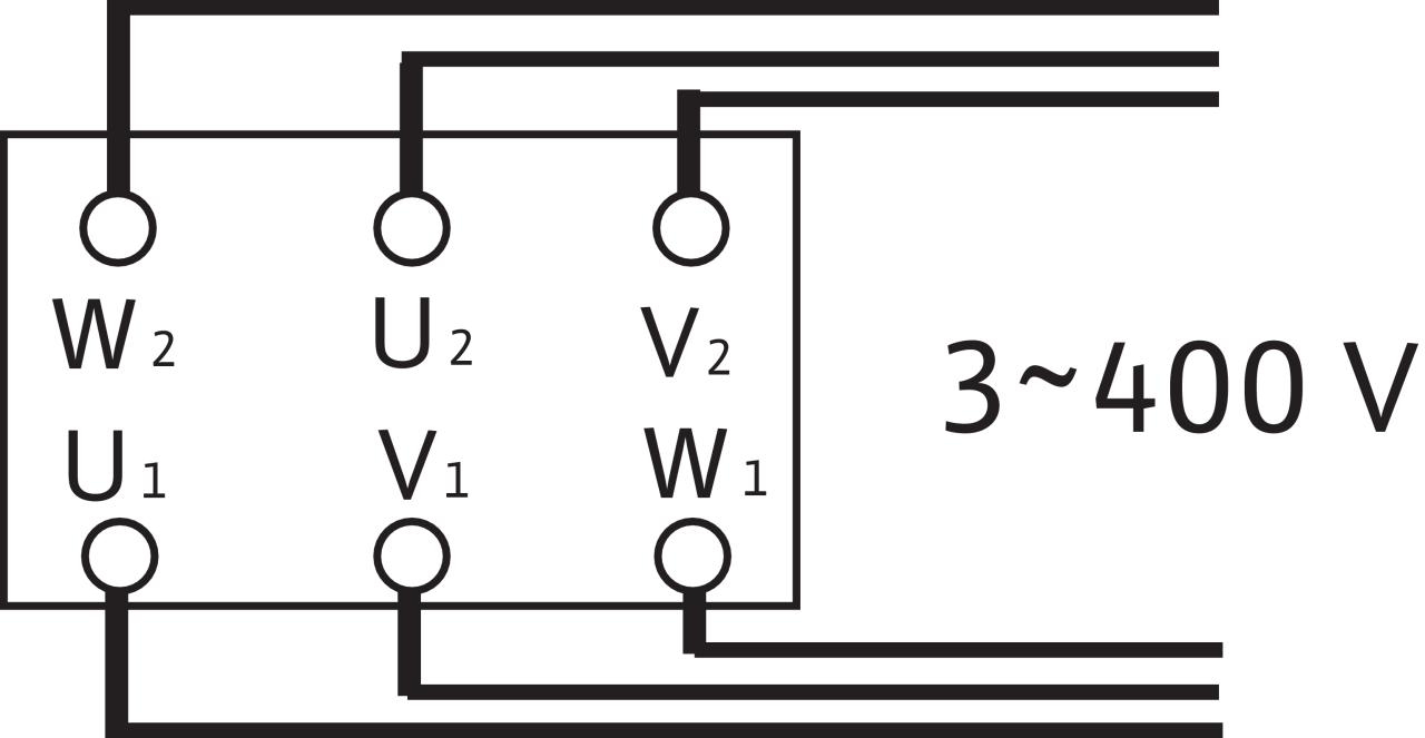 Трехфазный ток ≥ 5,5 кВт; прямой пуск Y-Δ