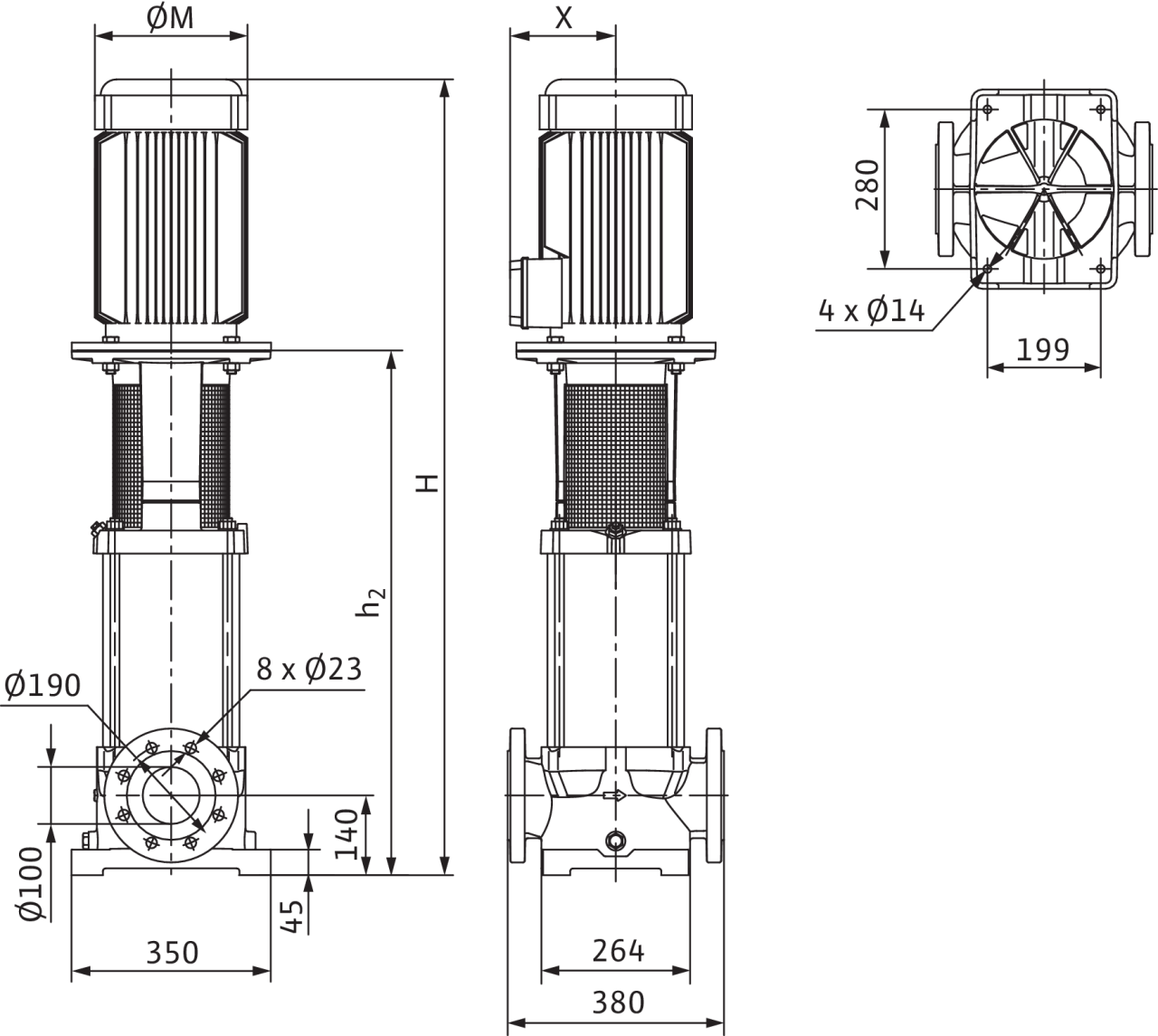Вал насоса и вал стандартного электродвигателя IEC соединены друг с другом посредством продольно-свертной муфты. Отдельный подшипник качения соединительного элемента гарантирует оптимальное восприятия осевых усилий. Промежуточные подшипники гидравлической части обеспечивают долгий срок службы.
