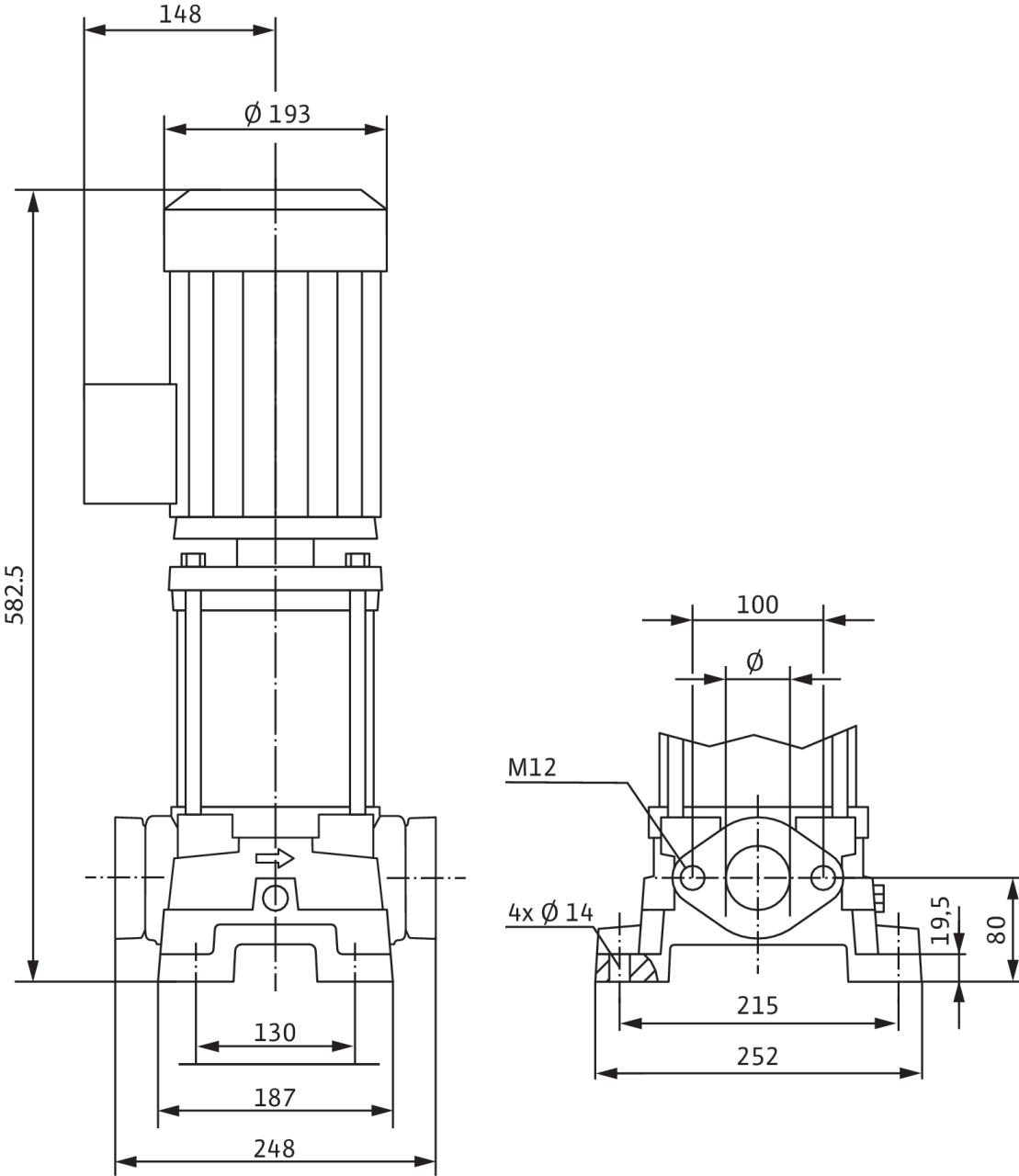 Данный насос имеет компактную конструкцию и оснащен сквозным насосным валом электродвигателя и не зависящим от направления вращения скользящим торцовым уплотнением. Секции, рабочие и ведущие колеса выполнены из нержавеющей стали. Корпус насоса выполнен из чугуна с катафорезным покрытием с подсоединениями под овальный фланец.
