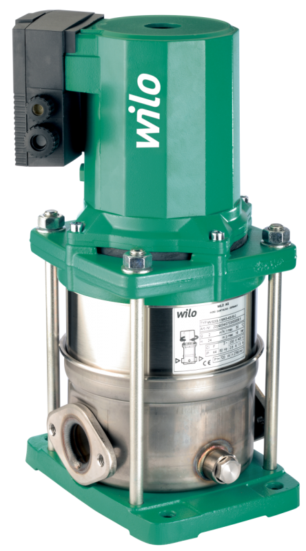 Многосекционный, нормальновсасывающий вертикальный высоконапорный центробежный насос во встраиваемом исполнении с трехфазным двигателем насоса с мокрым ротором.