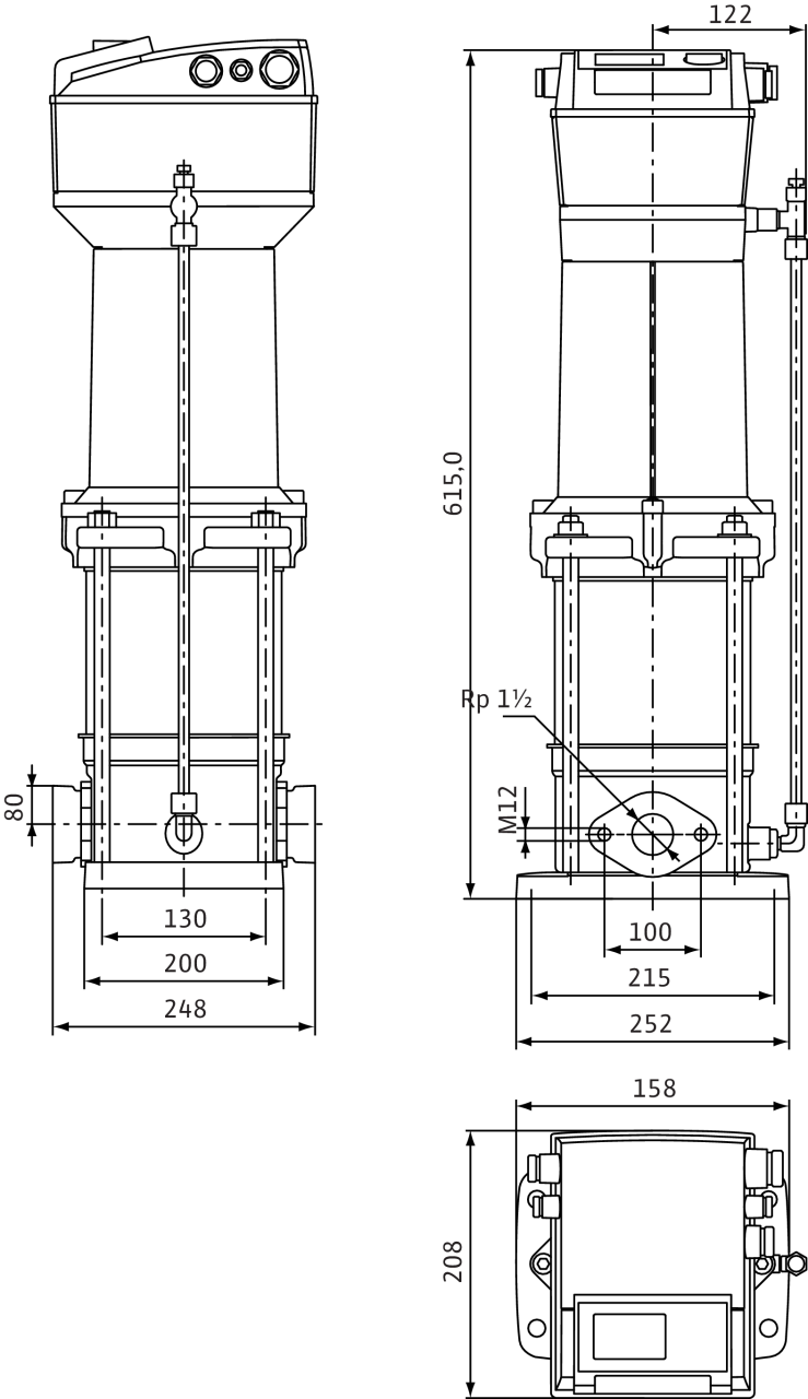 Многоступенчатый нормальновсасывающий вертикальный высоконапорный центробежный насос линейного типа с трехфазным электродвигателем с мокрым ротором и со встроенным частотным преобразователем.