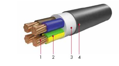 Силовой кабель с медной жилой с изоляцией из сшитого полиэтилена, в оболочке из ПВХ.