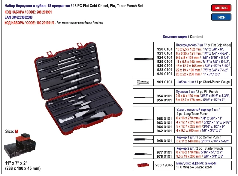 Набор бородков и зубил, 18 предметов. Код заказа 288201901