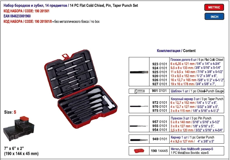 Набор зубил и бородок 14 предметов. Код заказа 19020101