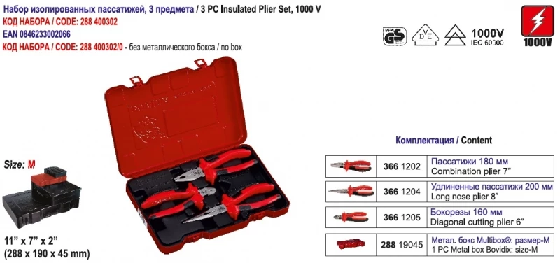 Наборы изолированных плоскогубцев. Код заказа 288400302