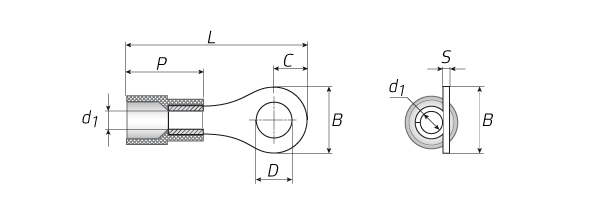 | Наименование | Сечение (мм²) | Ток (А) | Винт | D(мм) | B(мм) | L(мм) | P(мм) | d₁(мм) | C(мм) | S(мм) |