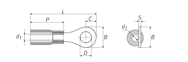 | Наименование | Сечение (мм²) | Ток (А) | Винт | D(мм) | B(мм) | L(мм) | P(мм) | d₁(мм) | C(мм) | S(мм) |