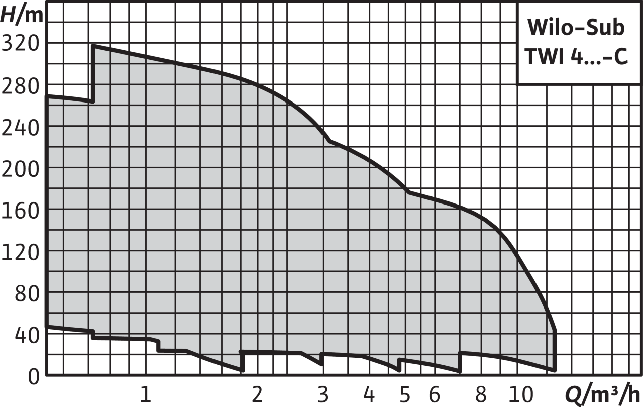 | TWI 4.05-33-CI | 3~400 V, 50 Hz | 7 м3/ч | 190 M | 5 м3/ч | 125 M | 4 " | Rp 1ВЅ | 3 кВт | 6079271 |