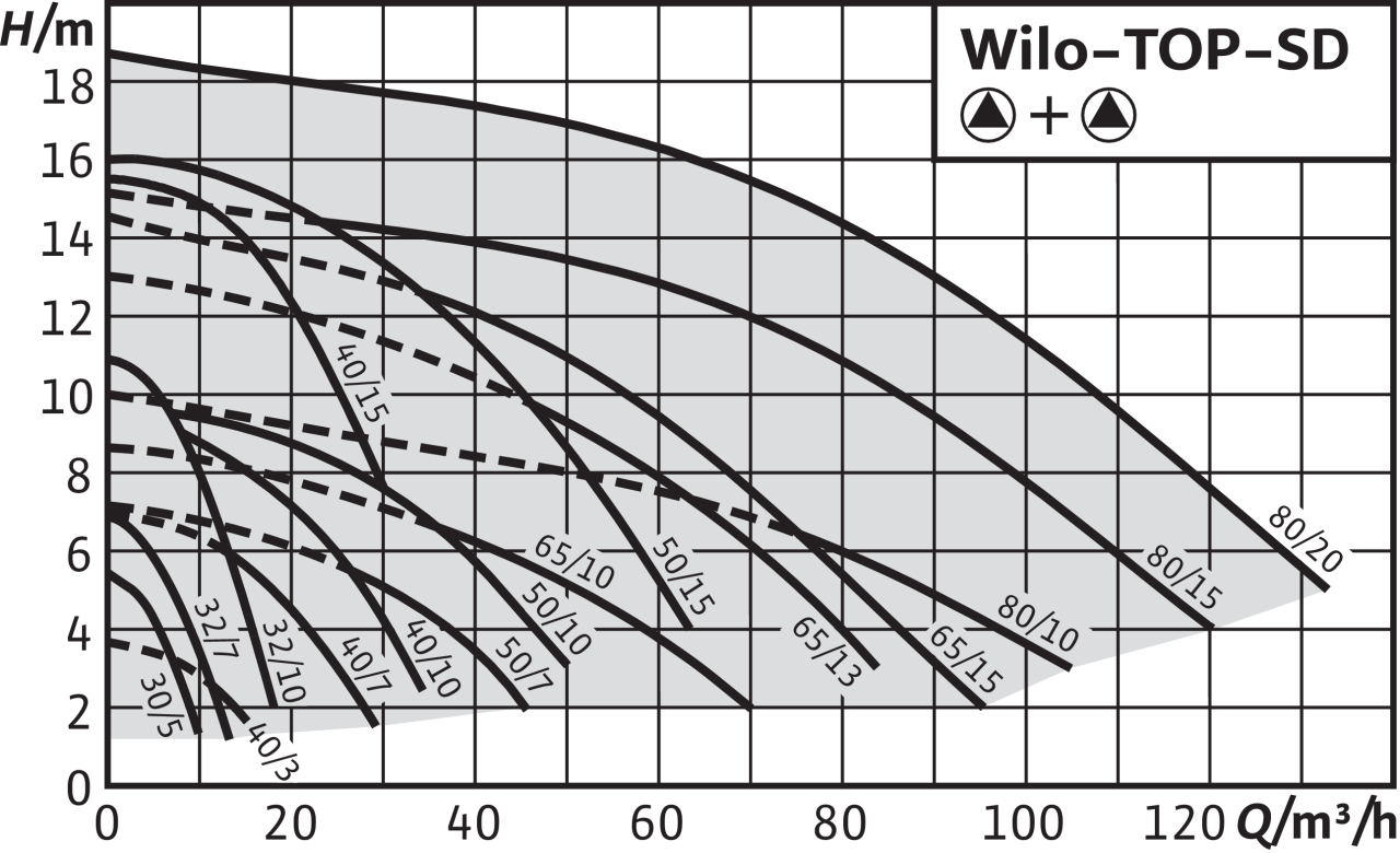 | TOP-SD | Стандартный сдвоенный насос (насос с фланцевым соединением, TOP-SD 30/5 с резьбовым соединением) |