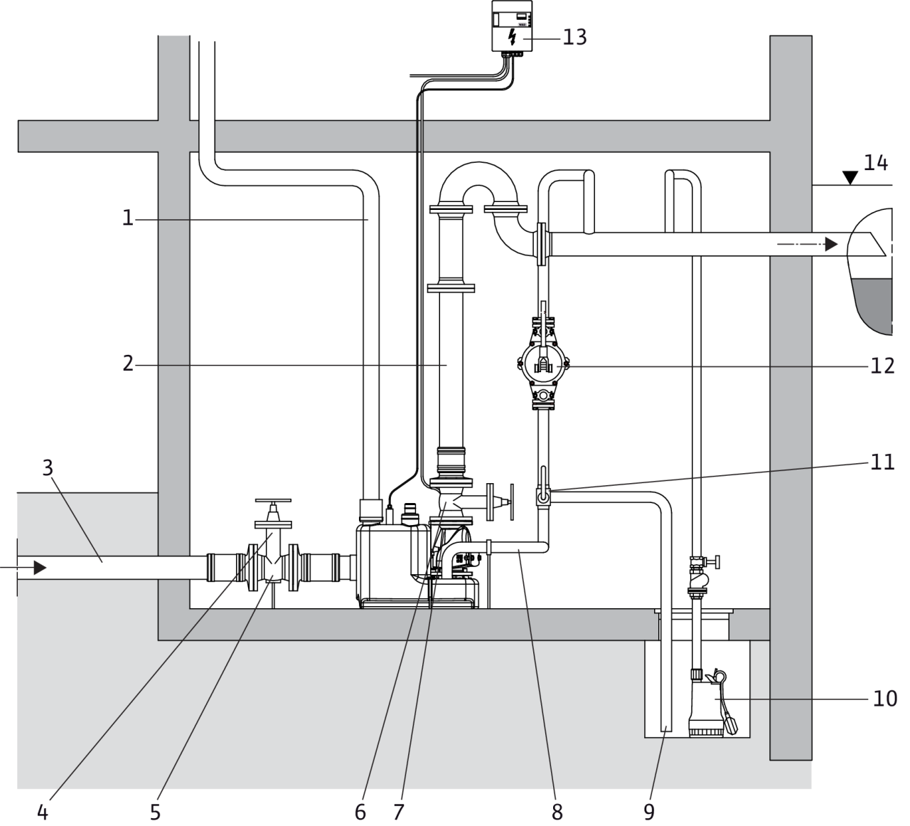 | 9 | Трубопровод для опорожнения, приямок насоса |