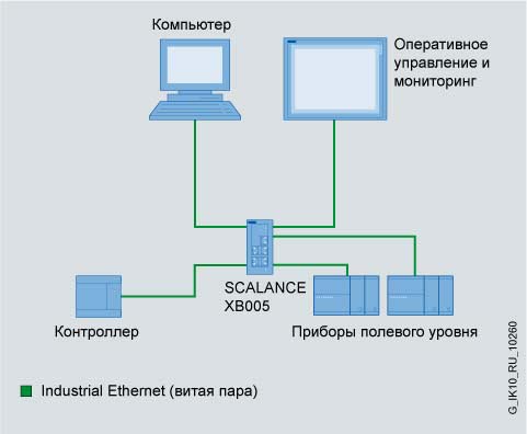 - Неуправляемые коммутаторы Industrial Ethernet серии SCALANCE XB-000 позволяют создавать рентабельные решения по построению небольших линейных или звездообразных структур коммутируемых сетей на уровне производственных машин или приборов.