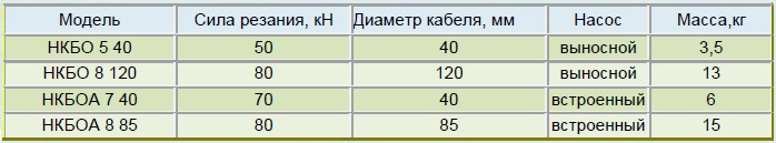 Характеристики — Ножницы для резки кабеля НКБО 540,НКБО 8120, НКБОА 740 и НКБОА 885