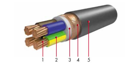 - 1: медная токопроводящая жила