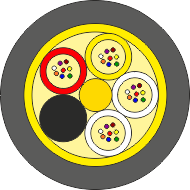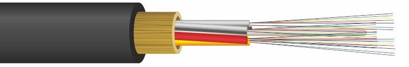 Кабель содержит сердечник модульной конструкции с центральным силовым элементом из стеклопластикового прутка, вокруг которого скручены (модули и кордели) методом правильной знакопеременной (SZ) скрутки. Внутри оптических модулей свободно уложены оптические волокна. Свободное пространство внутри оптических модулей и межмодульное пространство заполнено гидрофобным заполнителем. Сердечник скреплен нитями. На сердечник наложена ПЭТ лента, закрепленная нитью. Поверх скрутки наложен армирующий повив из арамидных нитей. Защитная оболочка – полиэтилен высокой плотности.