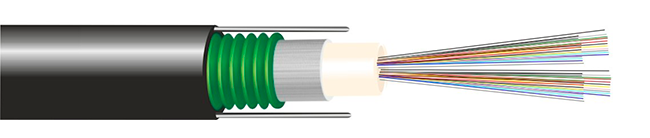 Данная конструкция кабеля состоит из оптической модульной трубки натурального цвета. Внутри оптической трубки может располагаться от 2 до 48 оптических волокон. Трубка заполнена гидрофобинолом. На оптическую трубку наложен армирующий повив из стеклонитей, поверх которых наложена стальная лента с двухсторонним ламинированным покрытием. Защитная оболочка выполнена из полиэтилена высокой плотности. В оболочке кабеля диаметрально противоположно расположены две стальные проволоки, которые выполняют функции силовых элементов. В случае изготовления кабеля с повышенными требованиями по пожарной безопасности оболочка кабеля выполняется из безгалогенного негорючего компаунда. При количестве волокон более 12 для идентификации используется кольцевая покраска и/или группирование в пучки с помощью идентификационных нитей.