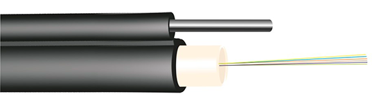 В данной конструкции несущий элемент – стальная проволока, расположен продольно к сердечнику. Сердечник представляет собой оптическую модульную трубки натурального цвета. Внутри оптической трубки может располагаться от 2 до 48 оптических волокон. Трубка заполнена гидрофобинолом. Поверх сердечника и несущего элемента одновременно накладываются оболочки из полиэтилена высокой плотности, соединенные вдоль общей образующей перемычкой. При количестве волокон более 12 для идентификации используется кольцевая покраска и/или группирование в пучки с помощью идентификационных нитей.