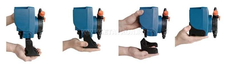 Насос имеет два основных режима работы. Режим 1. Пропорциональный 1х1: один принятый импульс от расходомера = 1 инжекции насоса.Режим 2. Дозирование во временном интервале 1х(0-60 сек.):один принятый импульс от расходомера = дозация в интервале 0-60 сек.