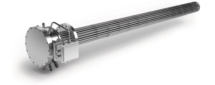 Компания Masterwatt производит погружные нагреватели мощностью до 5 МВт способные разогревать продукт до 750°С и выдерживать давление до 250 бар.