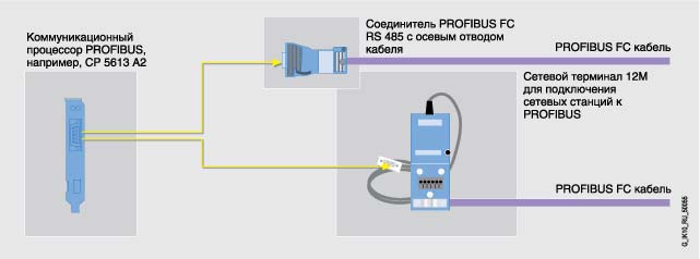 Подключение к электрической сети PROFIBUS с помощью соединителя FastConnect или сетевого терминала