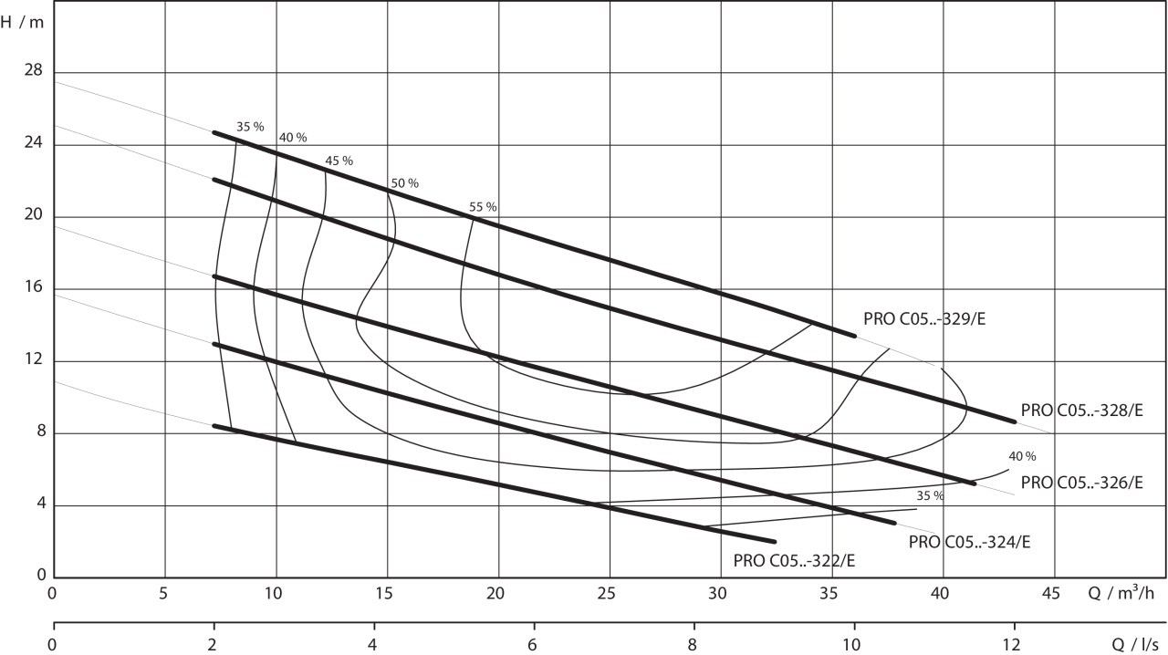 Характеристики согласно ISO 9906, приложение A. Указанный коэффициент полезного действия соответствует гидравлическому коэффициенту полезного действия.