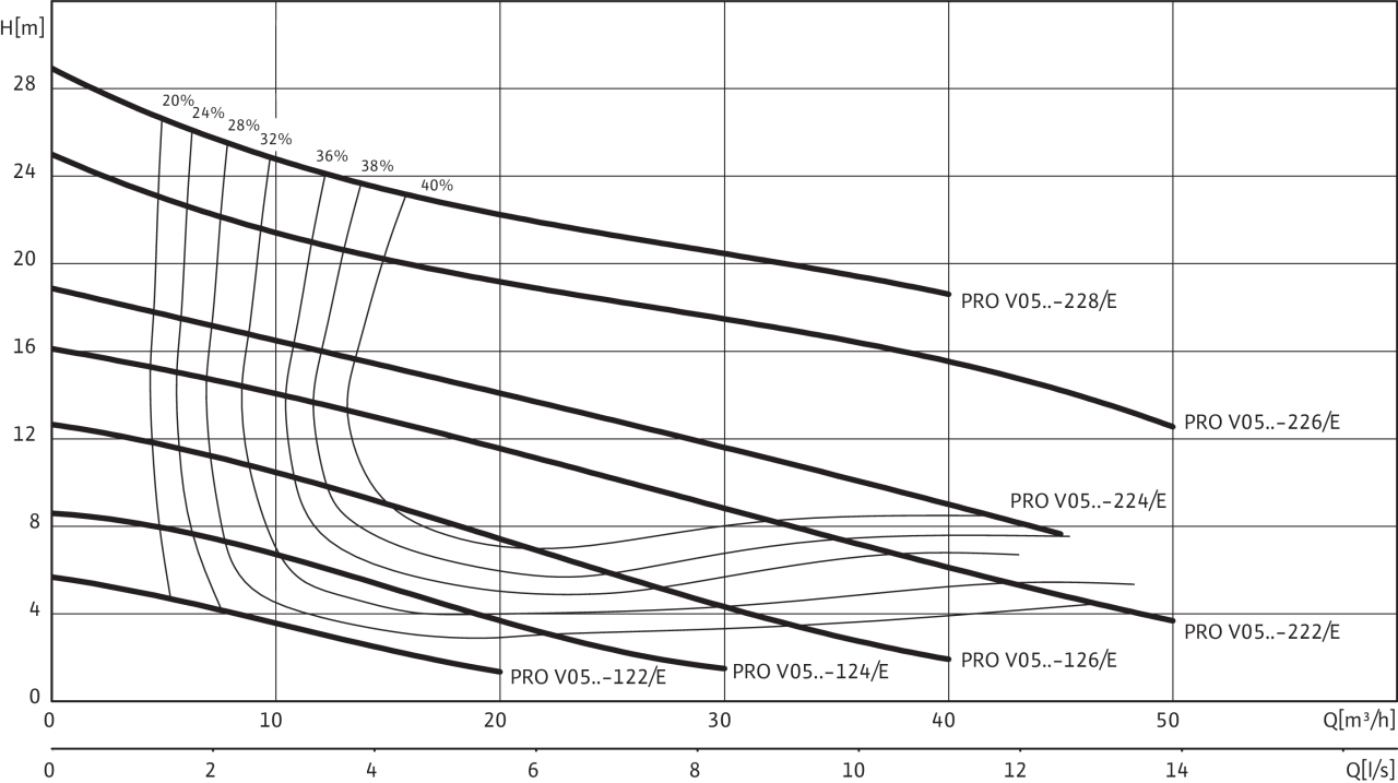 Характеристики Wilo-Rexa PRO V05-12../V05-22.. - 50 Гц - Число полюсов: 2