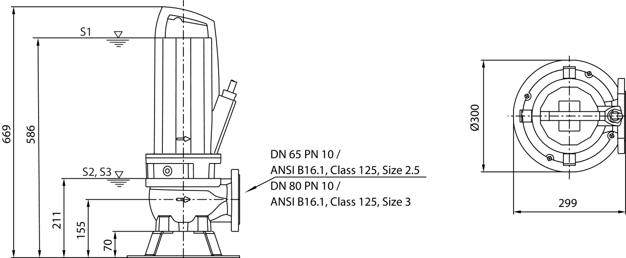 | Напорный патрубок | DN 65/DN 80 |