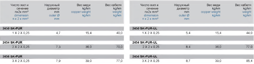 рабочая емкость 0,25 mm2 пара: макс. 60 nF/km |