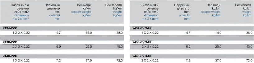 рабочая емкость 0,22 mm2 пара: макс. 60 nF/km |