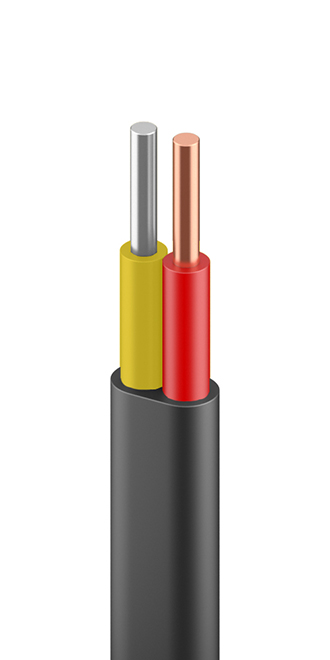 Провод термоэлектродный двухжильный с температурой эксплуатации от -40 до +70° С, с изолированными токоведущими жилами из меди и сплава (М, П, МК) или пары сплавов (ХА, ХК) в защитной оболочке из ПВХ пластиката.