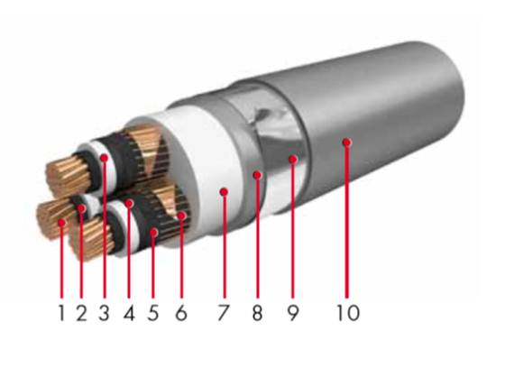 - 2: экструдированный экран по ТПЖ из полупроводящего материала