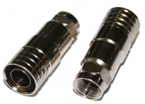 Разъем на коаксиальный кабель RG11, F1160BV, который применяется при подземной и воздушной (при наличии троса) прокладке между зданиями.