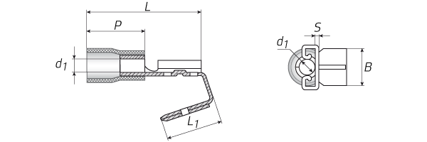 | Наименование | Сечение (мм²) | Ток, А | Размер контакта | B(мм) | L(мм) | L1(мм) | P(мм) | d₁(мм) | S(мм) |