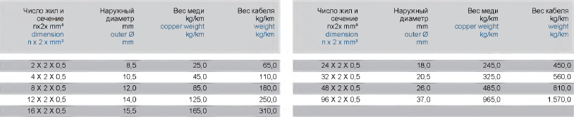 2 жилы скручены в пару, каждые 4 пары скручены в пучок, пучки прономерованы |