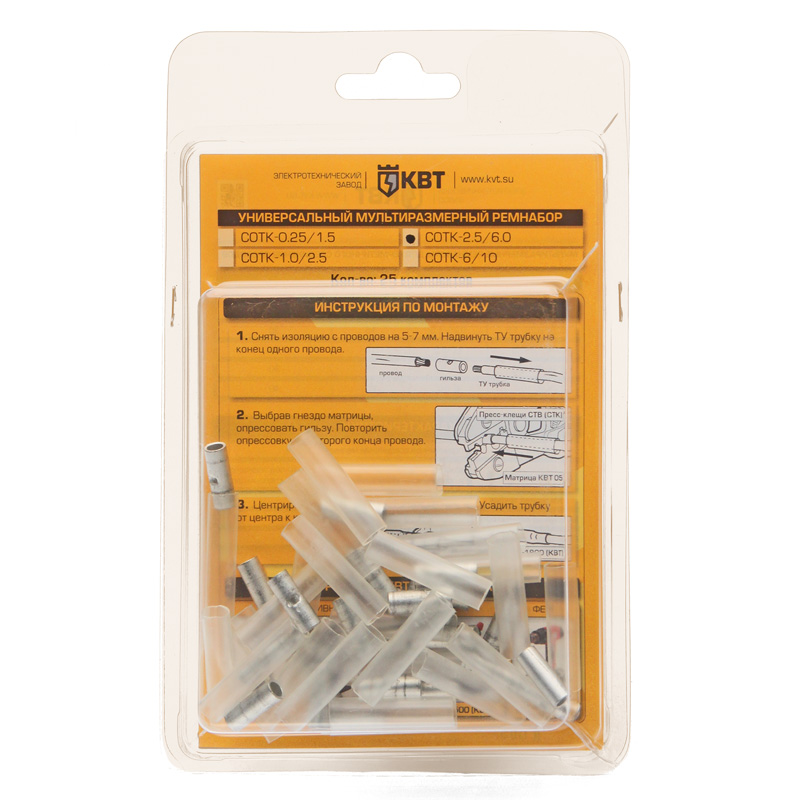 • Каждый комплект состоит из гильзы под опрессовку и прозрачной термоусаживаемой манжеты с клеевым слоем