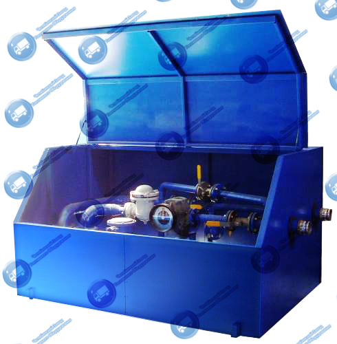 Модуль перекачки и учета топлива предназначен для работы со светлыми нефтепродуктами: бензин, дизельное топливо или керосин (указывается при заказе), спирт, растворитель, кислота. Изготовлен для приема и выдачи без изменения конфигурации напорной и всасывающей линий, т.е. имеет возможность реверса потока. Оснащен насосом со взрывозащищенным электродвигателем. Благодаря наличию счетчика с классом точности до 0,25% позволяет производить коммерческий отпуск топлива. Каркас модуля обшит сталью 0,4-1 мм и окрашен эмалью. Для предотвращения доступа к оборудованию имеет возможность установки замка на сервисный люк.