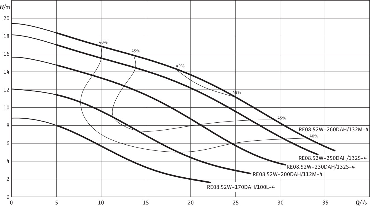 Характеристики согласно ISO 9906, приложение A. Указанный коэффициент полезного действия соответствует гидравлическому коэффициенту полезного действия.