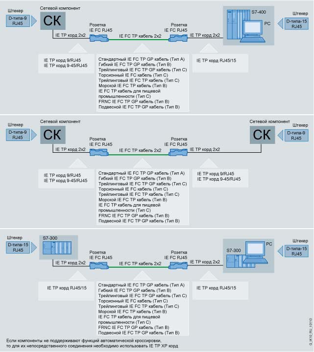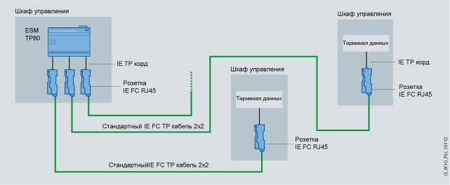 Соединитель Industrial Ethernet FC RJ45 подключается непосредственно к Industrial Ethernet FC кабелю. Через его гнездо RJ45 с помощью TP кордов и кабелей RJ45 к сети Industrial Ethernet производится подключение различных сетевых компонентов и терминалов.
