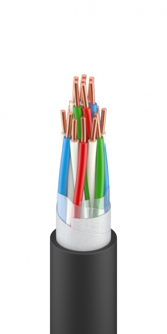 Кабель для сигнализации и блокировки с токопроводящими жилами из мягкой медной проволоки, с изоляцией из полимерной композиции, не содержащей галогенов, с поясной изоляцией из ПЭТ-Э плёнки, с термическим барьером из стеклоленты, с оболочкой из полимерной безгалогеновой композиции